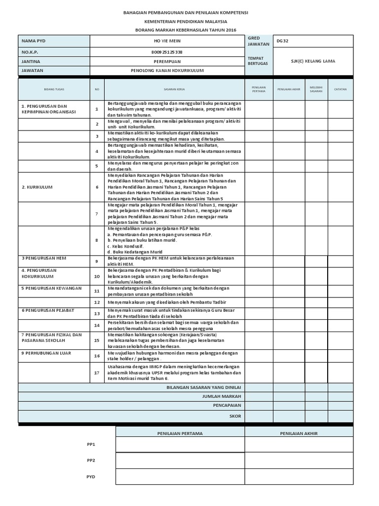 Contoh-contoh penyataan s asaran keberhasilan tersebut boleh dijadikan panduan kepada PYD dalam. Pengetua Guru Besar Pengurusan 1 Memastikan semua panitia mencapai perbelanjaan 100 bagi peruntukan yang ditetapkan. Jikalau dahulu kalangan guru di Malaysia akan dinilai melalui sistem Laporan Nilaian Prestasi Tahunan LNPT.